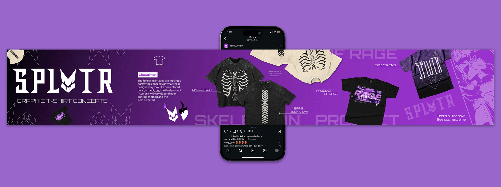 SPLVTR (pronounced "splat-ter") is an apparel brand aimed towards rebellious outcasts who do not belong anywhere nor match any specific labels. SPLVTR encompasses the concepts of alienation, self-reflection, anger, and how these could help push oneself forward in all aspects.